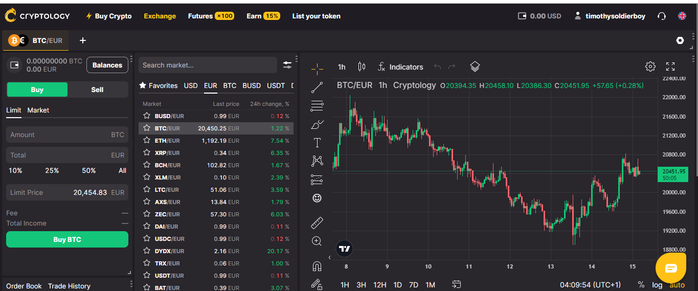 Cryptology is a digital trading platform with unique features such as spot trading, bank card support, futures trading with up to 100x leverage, and they have one of the lowest trading fees available on the market.