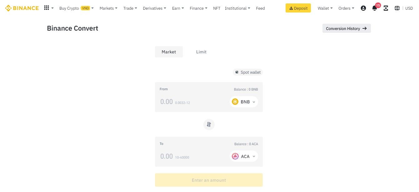 There are two ways to convert your crypto to ACA: Market order or Limit order.