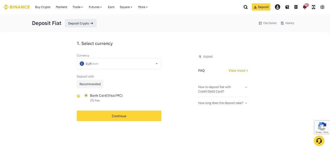 This option is beneficial if you prefer to fund your account with your preferred fiat currency beforehand. Customers can fund their Binance account with fiat currency via direct bank transfer or credit/debit card.