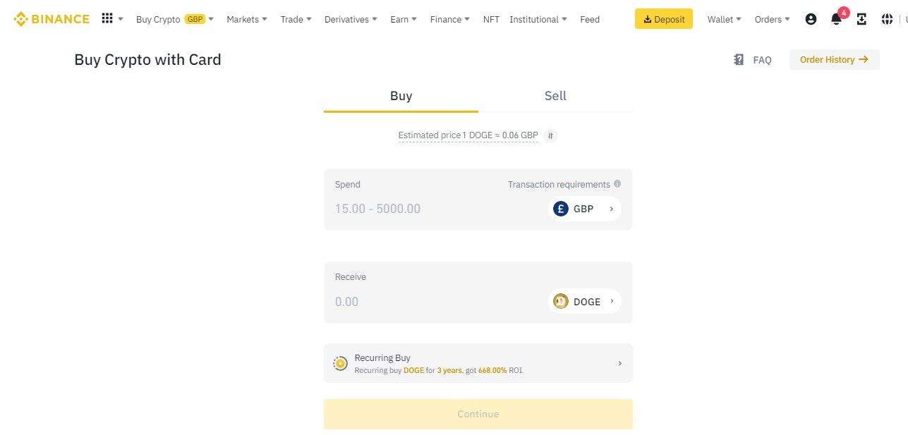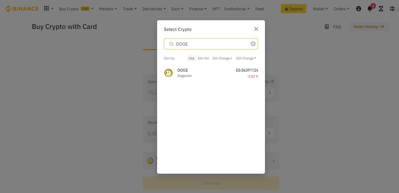 Choose a cryptocurrency exchange that supports Dogecoin trading. Binance is one of the best places to buy Dogecoin in the UK.