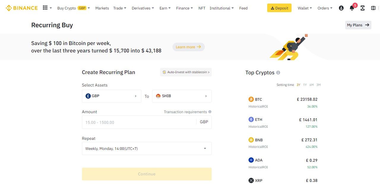 Alternatively, you have the choice to buy Shiba Inu on a recurring basis.