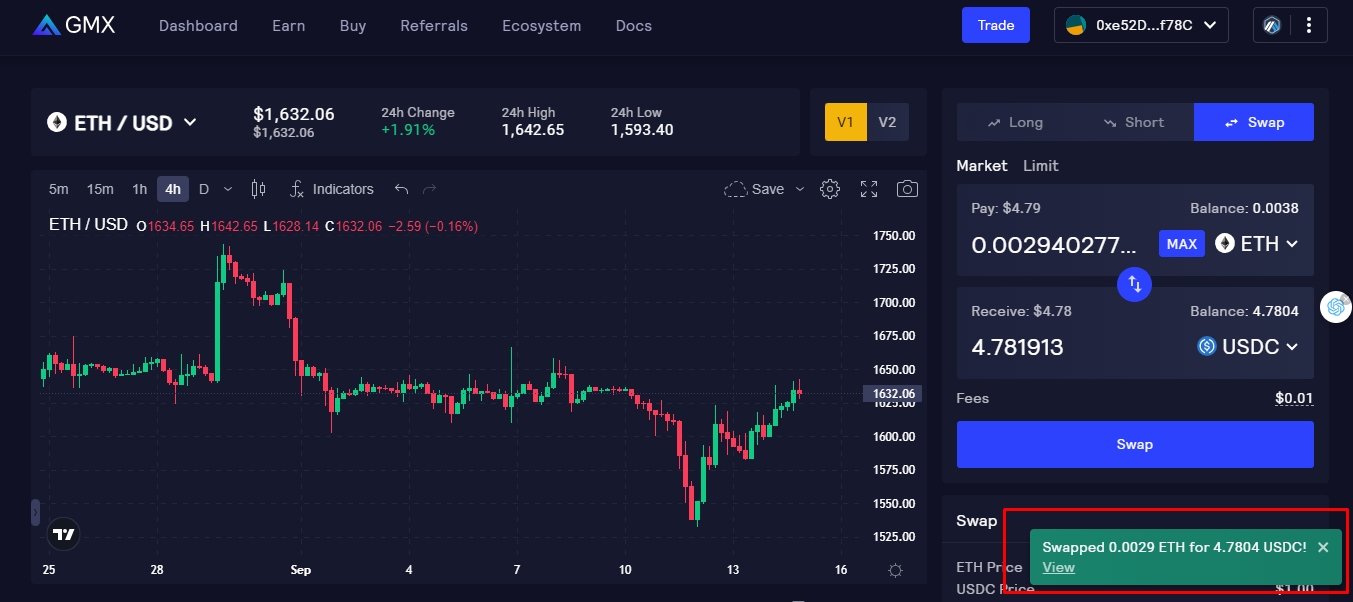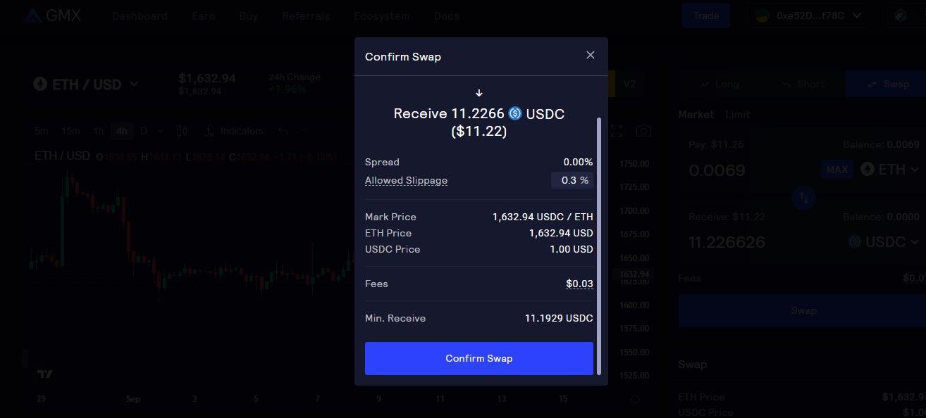 Below is a step-by-step guide to trading USDC on GMX DEX. You can always pick another stablecoin.