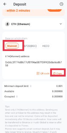 After setting up your account with Pionex Exchange, log in to your account to Copy your choice Crypto address in order to Paste it into your MetaMask wallet.