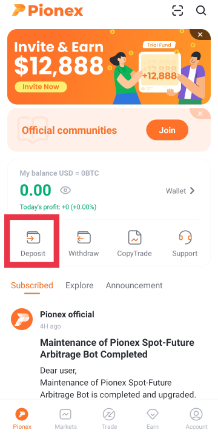 On the home page of your app, Click on the [Deposit] button