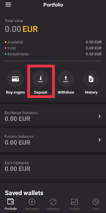 On the home page of your app, Click on the [Deposit] button