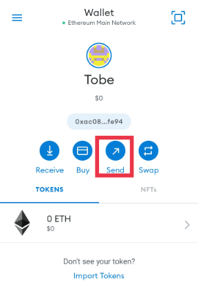 Click on [Send] on the Home page of your Wallet
