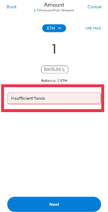 Normally, you should see a Confirmation Page asking you to confirm transaction, but because there's Insufficient Ethereum in this Wallet, the transaction could not go through.